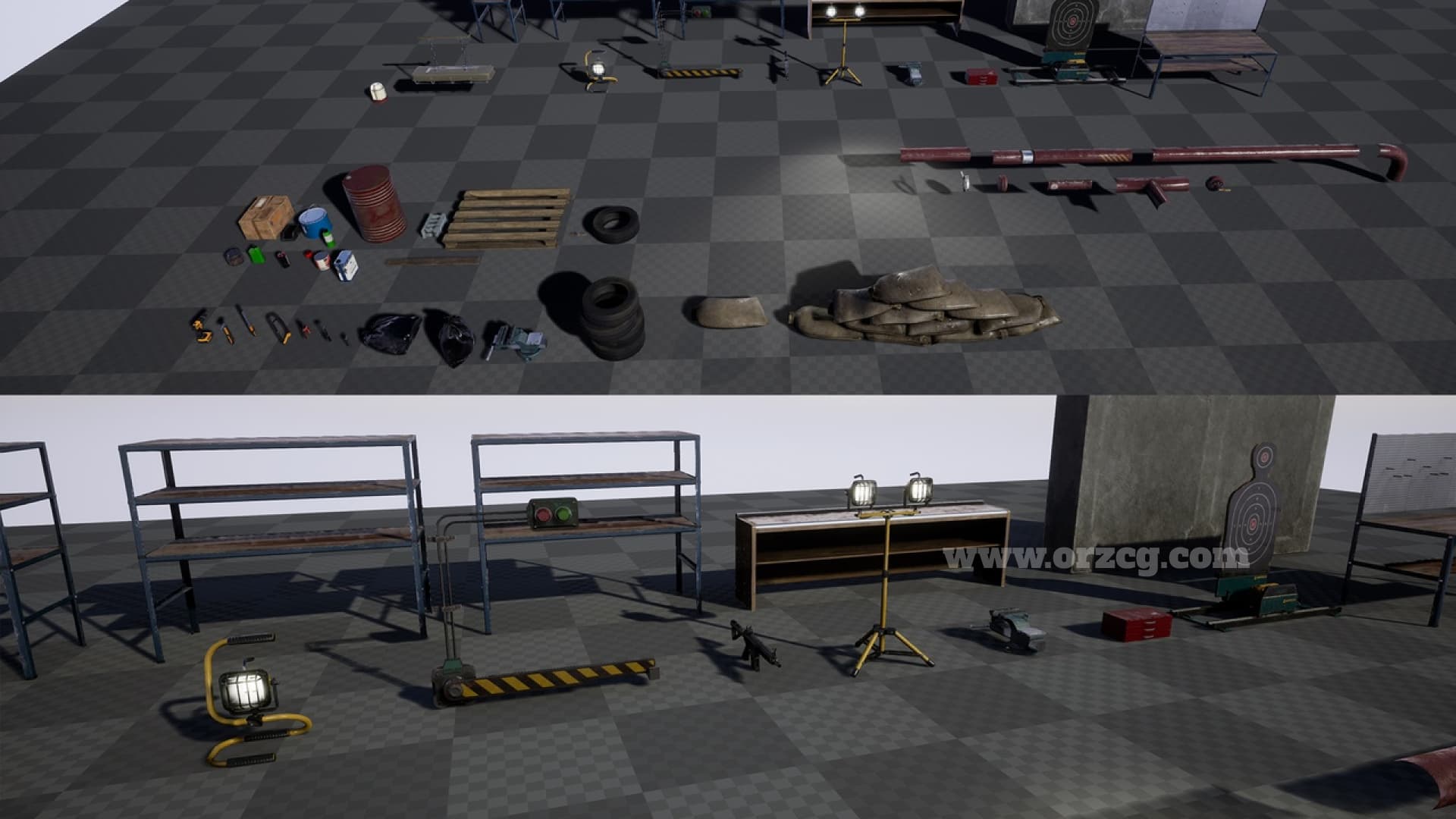 Modular Target Practice Hangar 模块化射击练习机库资源包 描述 借助本资源包,你可为游戏创建模块化训练场地场景。该场景的室内墙体采用模块化设计,可根据你的需求搭建任意布局。 资源包核心内容包括: 可交互目标物:目标物由独立部件构成,支持动画效果(可在模块化轨道上移动); 结构组件:一套模块化管道与金属脚手架; 功能场景元素:可利用附带的工具与涂装资产搭建工作台(Work-Bench); 场景装饰道具:与所有场景类资源包一致,本包提供丰富道具,用于装饰场景、提升场景完整呈现效果。 技术详情 一、核心功能(Features) 机库建筑(Hangar Building); 模块化墙体套装(7 个组件):含带门墙体、带窗墙体等; 模块化金属脚手架(12 个组件); 步枪(弹夹与子弹为独立部件); 带可移动推车的目标物(支持动画效果); 灯光道具:落地灯、地灯、壁灯、吸顶灯; 可动画的挡门闸(Door blocking gate); 场景装饰道具:木托盘、箱子、桶、沙袋、轮胎、油漆桶等; 模块化管道套装(8 个组件); 工具类资产:电钻、锤子、钳子、锉刀、锯子、螺丝刀、扳手; 射击场专用设施:射击台、架子、工作台。 二、技术参数 纹理尺寸与数量: 4096×4096:25 张 2048×2048:98 张 1024×1024:10 张 512×512:1 张 256×256:1 张 碰撞设置:支持,含自定义碰撞与自动生成碰撞; 顶点数量范围: 道具(Props):100 – 3000 个顶点 模块化建筑部件:92 – 632 个顶点 机库(Hangar):26145 个顶点 模块化脚手架:500 – 7600 个顶点 LOD(细节层次):0 级(无额外 LOD 层级); 资产数量: 网格模型:111 个 材质及材质实例:51 个 纹理:136 张; 支持的开发平台:个人计算机(PC); 支持的目标构建平台:个人计算机(PC)。 声明:本站所有文章,如无特殊说明或标注,均为本站网上收集发布。任何个人或组织,在未征得本站同意时,禁止复制、盗用、采集、发布本站内容到任何网站、书籍等各类媒体平台。如若本站内容侵犯了原著者的合法权益,可联系我们进行处理。